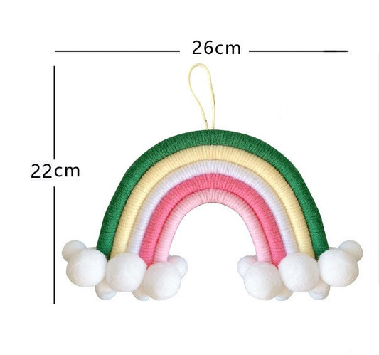 Kids Room Decoration - Handmade Weaving Rainbow Wall Hanging Ornaments with Felt Ball, Wooden Stick, and Tassel Pendant