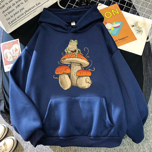 Cottagecore Mushroom Frog Pullover Crewneck Hoodie